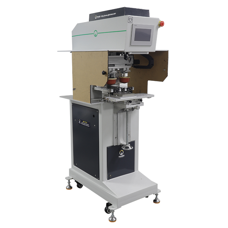 Features of this machine: 1. Control system: PLC plus touch screen control, flexible setting of function parameters, convenient to debug and manage 2. Loading and unloading system: Automatic lifting loading and unloading system, fast and accurate, improving automation 3. Conveying workbench: tank belt conveying workbench, precision divider drive, stable operation and precise positioning 4. Rubber head setting: independent head can adjust the stroke and speed, equipped with automatic glue cleaning device 5. Inking system: sealed oil cup inking system is adopted to save ink, clean and environmentally friendly 6. Drying system: equipped with hot air drying system, instant drying of printed patterns 7. Component guarantee: precision pneumatic components and solenoid valves are used
