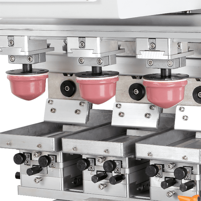 6 color pad printer provides more stations and realizes smooth rotation through pneumatic drive. During the pad printing process, the items to be printed can be placed on different stations in turn, which is convenient for continuous printing operations and other supporting processes, such as loading, unloading, drying, etc., greatly improving the printing production efficiency, and the pneumatic drive can ensure the rotation accuracy and stability.