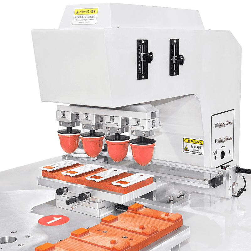 High speed pad printer is suitable for monochrome multi-station printing of patterns in stationery, toys, gifts, electrical appliances, electronics and other products.